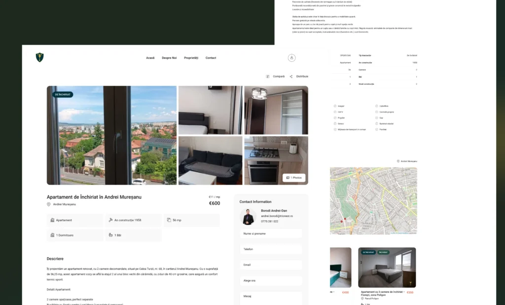 Designul final combină rafinamentul cu utilitatea. Conținutul este bine structurat, headline-urile transmit încredere, iar interacțiunea este intuitivă pe toate dispozitivele. Copywritingul susține acțiunea: fiecare pagină este gândită să conducă vizitatorul spre contact sau programarea unei vizionări.